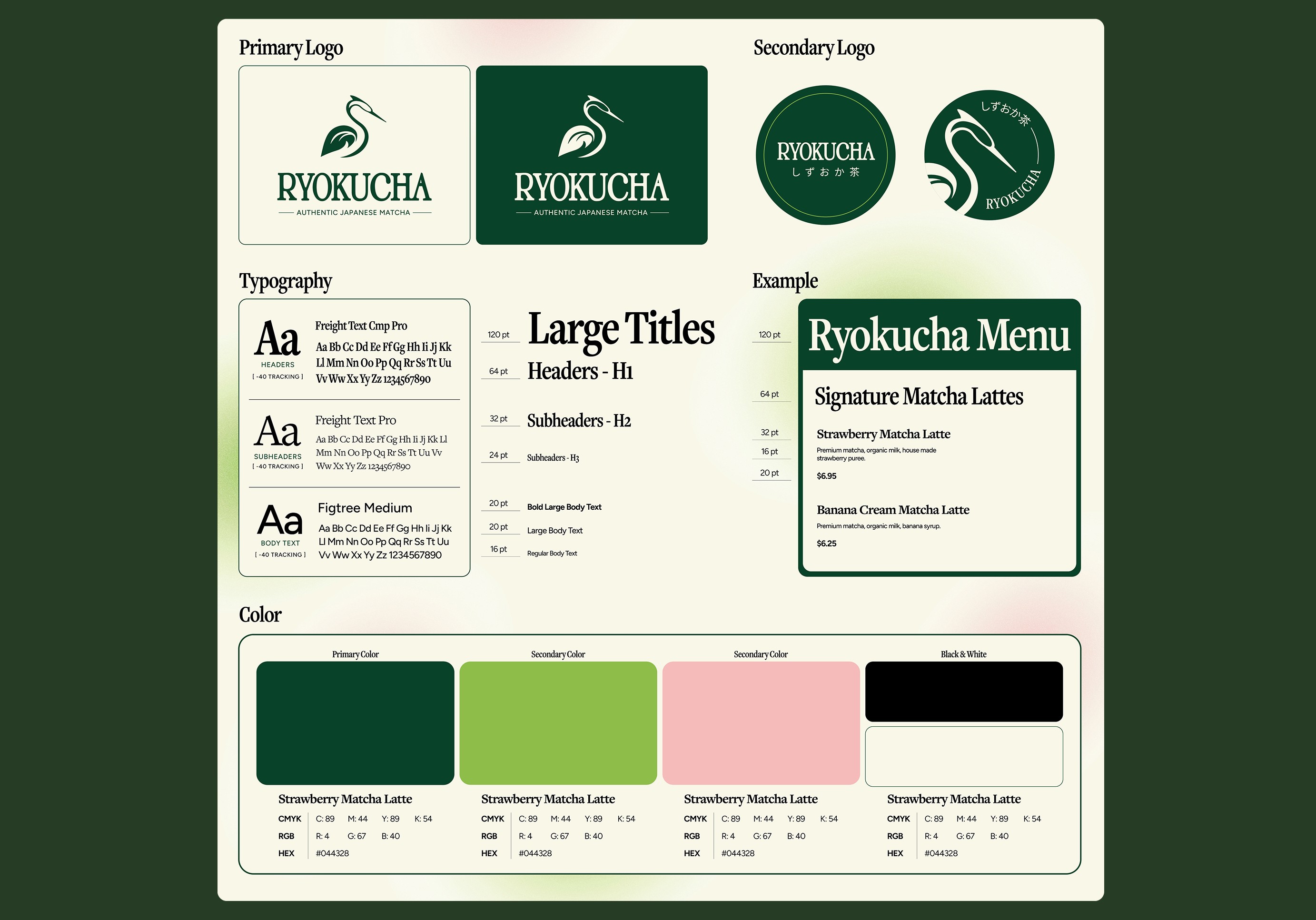 Ryokucha is a conceptual rebrand project for a modern matcha café. My goal was to explore how a contemporary tea brand could balance minimalism, warmth, and cultural influence while appealing to its target audience.